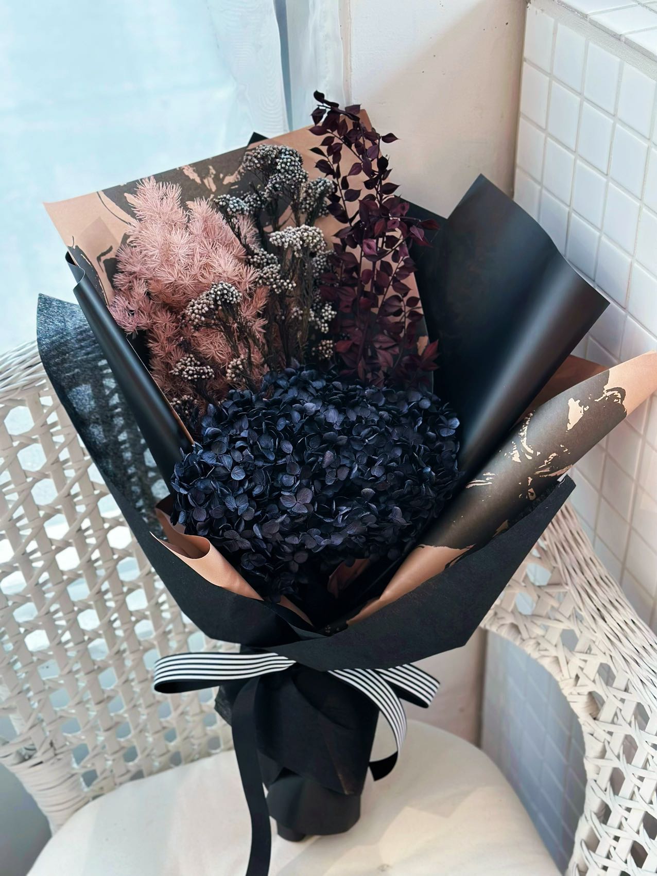 Discover the Black Knight dried flower bouquet, expertly preserved to maintain its natural beauty and elegance. Ideal for special occasions, this bouquet offers a timeless charm without the need for water or maintenance. Enjoy the convenience of same-day delivery across Melbourne and Melbourne CBD, ensuring your thoughtful gift arrives fresh and ready to impress. Perfect for adding a sophisticated touch to any event or space.