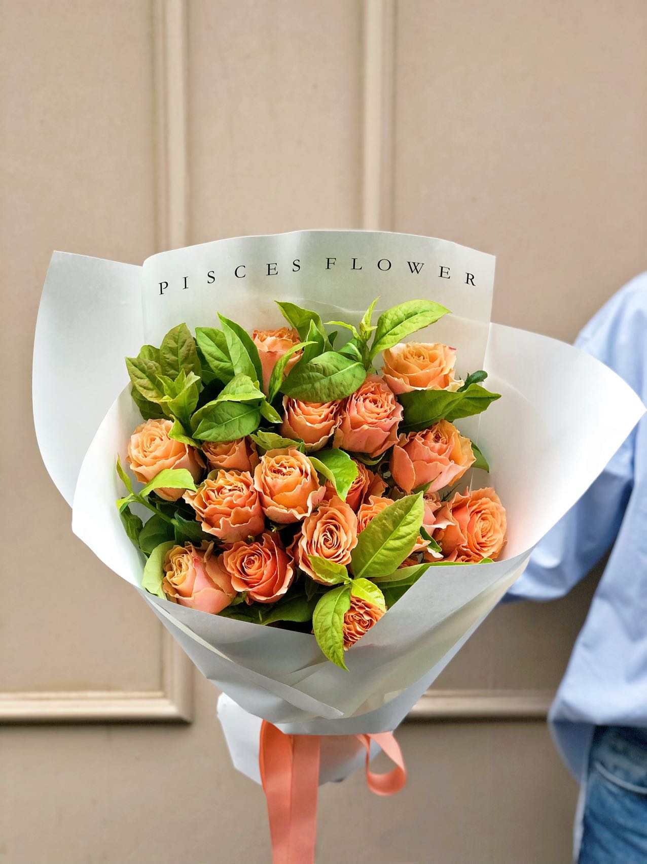 Colors will vary each day, from pinks to peach to reds and everything in between! There are two sizes: 10 stems and 20 stems which are both paired with seasonal foliage and wrapped in layers of premium white tissue and white paper.